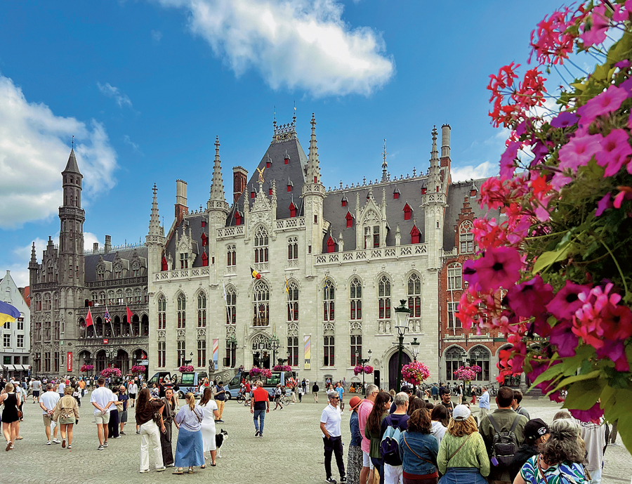 Den traditionellen Brennpunkt der Stadtgeschichte bildet der Grote Markt mit dem Belfried als Symbol des Bürgersinns. Der 83 Meter hohe Turm ragt aus den Stadthallen heraus und stammt im Kern noch aus dem 13. Jahrhundert. Auch heute, acht Jahrhunderte später, darf kein Neubau dieses Zeichen des Bürgerstolzes überragen. Die Besucherterrasse bietet einen einzigartigen Blick auf das mittelalterliche Dächergewirr. In früheren Jahrhunderten landeten die Handelsschiffe noch direkt am Hauptmarkt an. Die gelieferten Stoffballen wurden im 13. Jahrhundert in der Waterhalle gelagert. An deren Stelle befindet sich heute der Provinzialpalast. Der neogotische Prachtbau beherbergt die Regierung der Provinz Westflandern, deren Hauptstadt Brügge heute ist.
