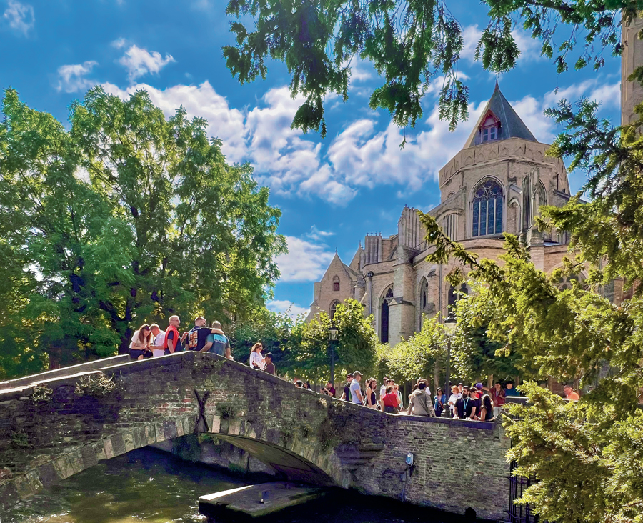 Reizend durchziehen Grachten die mittelalterliche Altstadt. Schon im 9. Jahrhundert überzeugte der hier vorgefundene Naturhafen den Grafen Balduin I., ließ ihn an dieser Stelle eine Burg errichten. Bald liefen hier die Seefahrtsrouten der Hanse, des venezianischen Orienthandels und des Wollhandels mit England zusammen. Darüber hinaus entwickelte sich früh die Textilindustrie. Die Herzöge von Burgund hielten prachtvoll Hof, Brügge galt damals neben Venedig als reichste Stadt der alten Welt! Aus heutiger Sicht fast ein Glücksfall, führte das Versanden des Flusses Zwin und die kaiserliche Förderung Antwerpens nach 1500 zu einem jahrhundertelangen Dämmerschlaf. Die allgegenwärtigen Bausünden des Industriezeitalters blieben Brügge so erspart. Beim Eintauchen in die Gassen und Plätze bleiben die einstige Rolle und der mittelalterliche Wohlstand erlebbar. Längst spielt der Tourismus die entscheidende Rolle in dieser Stadt wie aus dem Bilderbuch.
