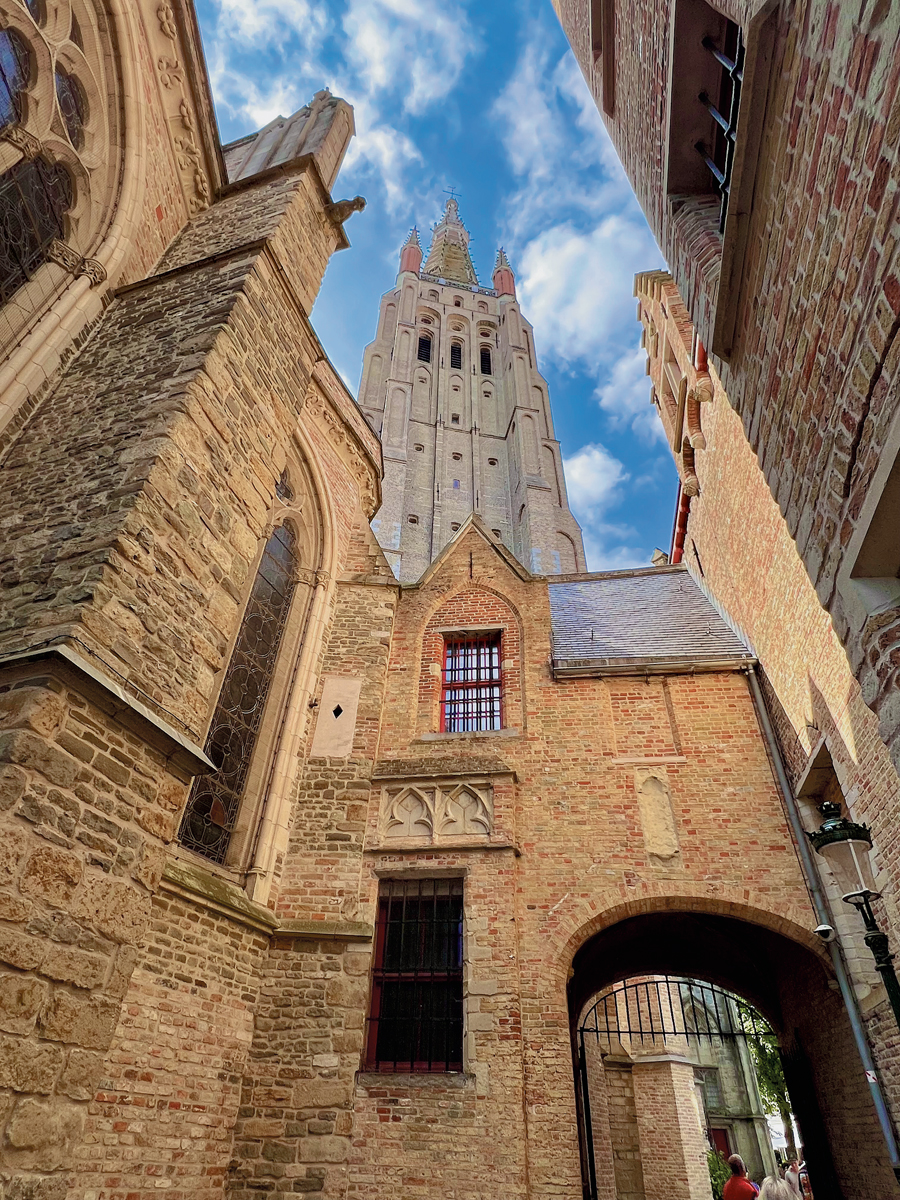 Als weiterer imposanter Sakralbau lohnt die Liebfrauenkirche den Besuch. Der knapp 116 Meter hohe Turm gilt als zweithöchster Backsteinkirchturm der Welt. Die Kirche wird heute für religiöse Zwecke, aber auch museal genutzt. Die Ausstellung zeigt Gemälde, Statuen sowie Grabmäler und als Highlight „Die Madonna mit Kind“ von Michelangelo. Die Herren von Gruuthuse ließen ihr Palais baulich direkt mit der Liebfrauenkirche verbinden. Die Kräutermischung Grut wurde im Mittelalter zum Bierbrauen genutzt. Das Recht, darauf Steuern zu erheben, machte die Familie Gruuthuse schon damals reich. Das 1955 eingerichtete Museum für Archäologie und Kunsthandwerk bietet neben einer 1521 geschaffenen Büste des Kaisers Karl V. das schaurige Exemplar einer bis ins 19. Jahrhundert genutzten Guillotine.